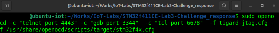 sudo openocd -c "telnet_port 4443" -c "gdb_port 3344" -c "tcl_port 6678" \